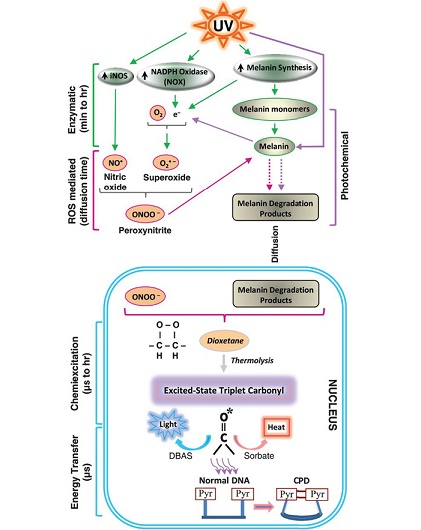 The Melanin count from the upper level is decreased because the melanine synthesising protein is not synthesized and the exponential decrease in the protein leads to decrease in melanine numbers. Genetic changes occurred in genes because of U V Lights or others source tends to change the character and behaviour of genes the melanine is not synthesized and change in tyrosine amino acid makes the melanine cell dies or stop the synthesizing melanine.